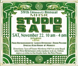 We continue to affer many features that made the Studio Sale special for its first run. The Kid’s Room, where Valley children sold their wares, will now also have art projects to work on while parents shop. There will be door prizes donated by each vendor. Live musical offerings from local musicians. This year’s vendors include artists, craftspeople, and herbalists who have exhibited here before, plus new faces as well. There will be a free refreshments table stocked with contributions from each vendor, and lunch menu offered for sale.
