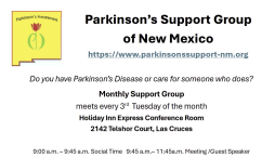 Monthly Support Group meets every 3rd Tuesday of the month at the Holiday Inn Express - Conference Room (2142 Telshor Court, Las Cruces, NM)