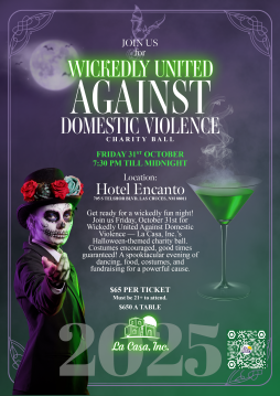 Join us for a hauntingly elegant evening in support of a powerful cause. La Casa, Inc. invites you to our first-ever Halloween Charity Ball, Wickedly United Against Domestic Violence, where costumes, cocktails, and compassion come together for a night to remember.