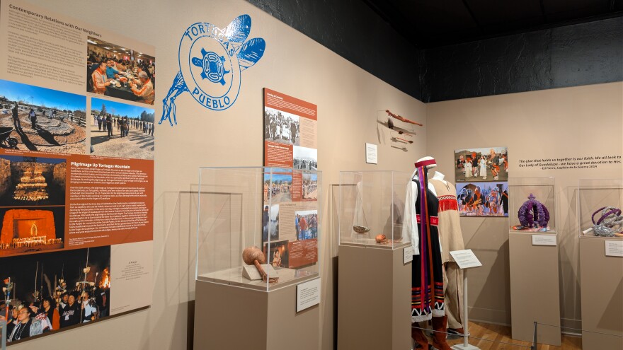 So “Land of the People, Tierra Sagrada,” that focuses on the Tortugas Pueblo, is a very unique exhibit. So the Tortugas Pueblo is featured in the Las Cruces region. Many people have heard of their Fiesta of Guadalupe, where they go up Tortugas Mountain for kind of a three-day ceremony and also dance at their own pueblo. So a lot of this exhibit goes over kind of the ceremony, those three days, and other traditions that they practice.