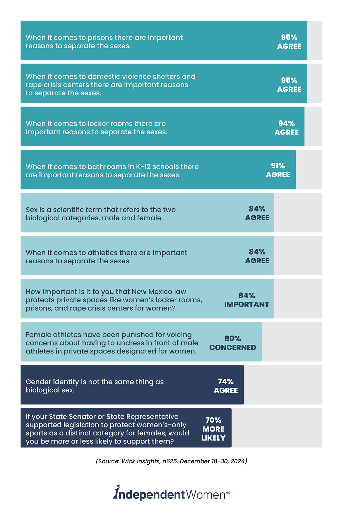 Most New Mexicans agree that girls and boys have the right to single-sex bathrooms, locker rooms, and sports at school. A poll by Independent Women's Network found that 91% of New Mexicans believe K-12 boys and girls bathrooms should be separated and 84% of New Mexicans believe sports should be separated by biological sex. In 2022, Las Cruces Public Schools implemented the “Gender Inclusive Schools” policy and regulation JBD, which allows trans-identifying biological boys into girls’ bathrooms, locker rooms, and PE sports. Both Pamela Cort and Robert Wofford voted for this policy.