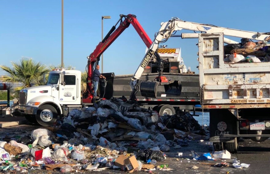 Two Las Cruces Utilities Grappler trucks then collected the refuse from the parking lot and transported it to the Amador Avenue Transfer Station. The refuse was cleared from the parking lot by 10 a.m.